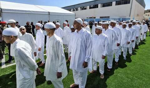 وظهر العشرات من العناصر المفرج عنهم بلباس أبيض داخل ملعب صغير لكرة القدم ملاصق لأحد المقرات الأمنية في مدينة الزاوية الساحلية، وكانوا محاطين برجال أمن مسلحين.