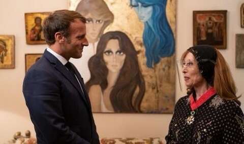 الفنانة نانسي عجرم نشرت صور فيروز مع ماكرون وأرفقتها بتعليق: “يا ضحكة لبنان”.