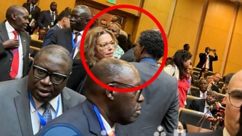 أظهر مقطع فيديو لحظة طرد وفد صهيوني تسلل للقاعة التي يعقد فيها مؤتمر قمة الاتحاد الإفريقي بعد ضغط من الجزائر ودولة جنوب إفريقيا.