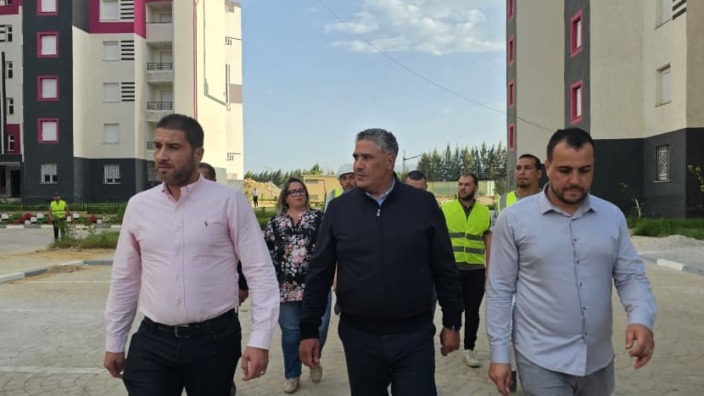 وخلال هذه الزيارة، عاين السيد الوزير مختلف مكونات المشروع الذي انتهت به الأشغال المتعلقة بالعمارات وكذا التهيئة الأولية والثلاثية داخل الموقع. كما وقف السيد الوزير على مدى تقدم أشغال المدخل الرئيسي للحي، التي تشرف على إنجازها الوكالة الوطنية لتحسين السكن وتطويره “عدل”، حيث بلغت (الأشغال) مرحلتها الأخيرة. وفي هذا السياق، أسدى السيد الوزير تعليمات تقضي بـالانتهاء من كل الروتوشات الأخيرة، مع الإسراع في استكمال ربط الحي بمختلف الشبكات الحيوية على غرار الماء، الكهرباء، والغاز، وذلك تحضيرًا لتهيئة الظروف الملائمة لتوزيع السكنات على مستحقيها في أقرب الآجال.