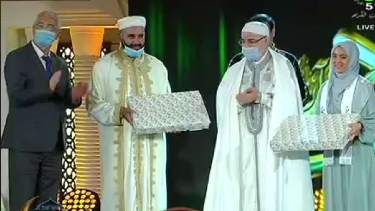 وسلمت الجوائز للمتوجين في سهرة رمضانية مفعمة بالذكر الحكيم بثت على قناة القرآن الكريم سهرة الجمعة.