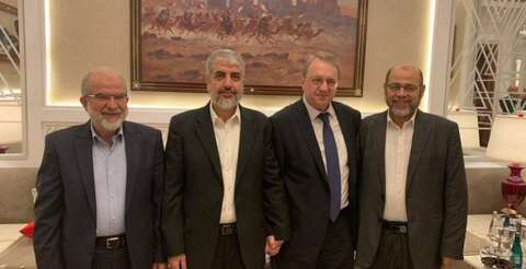 جاء ذلك، في لقاء بالعاصمة القطرية الدوحة، حيث ضم وفد حركة حماس، كلّا من: رئيس مكتب العلاقات الدولية في الحركة د. موسى أبو مرزوق، والأستاذ خالد مشعل، رئيس مكتبها السياسي السابق، والأستاذ سامي خاطر، عضو مكتبها السياسي، بالإضافة إلى ممثل الحركة لدى موسكو.