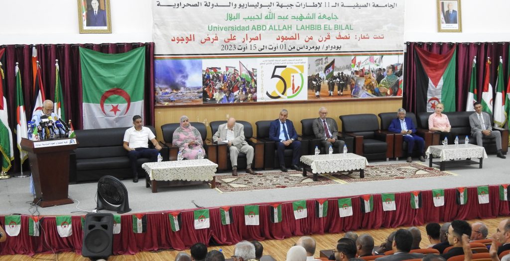 وعرفت مراسم اختتام الجامعة الصيفية التي تواصلت على مدار 14 يوما، مداخلات استهلها عضو المكتب الدائم للأمانة الوطنية ورئيس المجلس الوطني لجبهة البوليساريو ورئيس الجامعة الصيفية لأطر الجبهة حمة سلامة، الذي قال أن الجامعة الصيفية جسدت شعارها الموسوم بـ “نصف قرن من الصمود .. إصرار على فرض الوجود” من خلال “الوقوف على حصيلة نصف قرن من الكفاح والمقاومة والصمود”، كما جاء في كلمته.