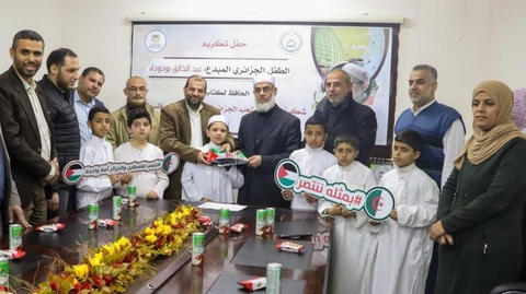 احتفت الهيئة العامة للشباب والثقافة بغزة، بالطفل الجزائري “عبد الخالق بودودة” الفائز بجائزة لحفظ القرآن الكريم، تقديرًا لموقفه الكريم وتضامنه مع أطفال فلسطين.