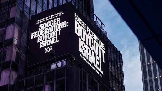 ودعا تحالف يضم هيئات مناصرة ومجموعات من المشجعين اتحادات كرة قدم أوروبية إلى مقاطعة إسرائيل عبر لوحة إعلانية في ميدان تايمز سكوير قبل أشهر من انطلاق منافسات كأس العالم. ورُفعت اللوحة الإعلانية الثلاثاء في نيويورك، التي من المقرر أن تستضيف ثماني مباريات في كأس العالم العام المقبل منها المباراة النهائية. تشترك كندا والمكسيك مع الولايات المتحدة في استضافة هذه المسابقة العالمية التي تقام كل أربع سنوات. وتطالب الحملة اتحادات كرة القدم في بلجيكا وإنجلترا وفرنسا واليونان وإيرلندا وإيطاليا والنرويج واسكتلندا وإسبانيا بمقاطعة المنتخب الإسرائيلي ومنع اللاعبين الإسرائيليين من المشاركة في المسابقات المحلية، عازية ذلك إلى الهجمات المستمرة في غزة. وقال عابد أيوب، المدير التنفيذي الوطني للجنة الأمريكية العربية لمناهضة التمييز، في بيان “بينما تستعد الولايات المتحدة لاستضافة كأس العالم لكرة القدم في 2026، يجب ألا يسمح الأمريكيون بأن تصبح ملاعبنا منصات لتبييض جرائم الحرب”. وأطلقت اللجنة مبادرة (غيم_أوفر_إسرائيل) مع عدد من الشركاء الأوروبيين. وقال أيوب “نحن نقف مع نظرائنا الأوروبيين ونطالب جميع الهيئات التي تدير كرة القدم باتخاذ إجراءات فورية وحاسمة لمنع إسرائيل من المنافسة الدولية”. وتابع “يجب على العالم أن يقول لإسرائيل إن اللعبة انتهت، وإنه لا مكان في الرياضة لمجرمي الحرب”. وتلاحق إسرائيل اتهامات بارتكاب جرائم حرب وإبادة جماعية في غزة ما دفع نشطاء في إسبانيا للتظاهر ضد مشاركة فريق إسرائيلي في فعاليات مسابقة دراجات هوائية مطلع الأسبوع الجاري.