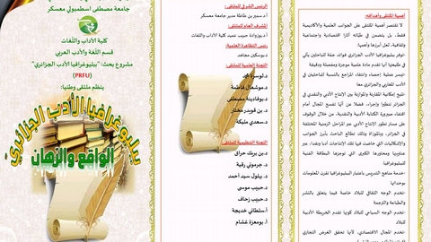 تحتضن مكتبة اللغات بجامعة مصطفى اسطمبولي بولاية معسكر، يوم 30 أكتوبر الجاري مجريات الملتقى الوطني الثاني حول موضوع “ببليوغرافيا الأدب الجزائري.. الواقع والرهان”، بالتعاون مع كلية الآداب واللغات قسم اللغة والأدب العربي، ومخبر اللسانيات العربية وتحليل النصوص.