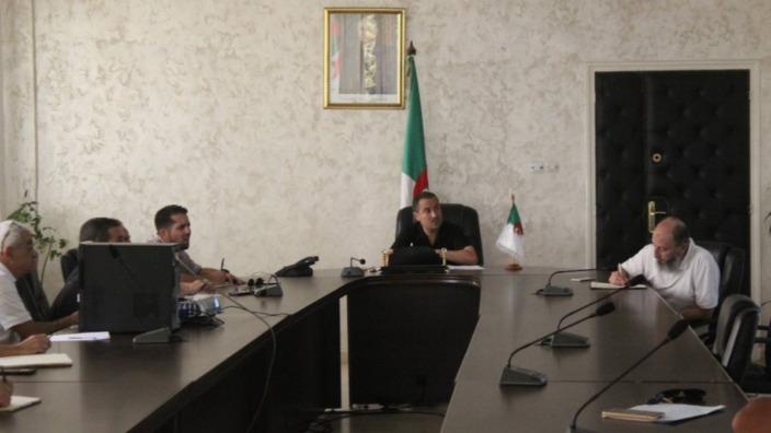 تقديم عرض فوتوغرافي حول وضعية نظافة المحيط عبر اقليم بلديات المقاطعة ومن خلال العرض تم تحديد برنامج التدخل حسب كل حالة، مع اسداء تعليمات بتكثيف عمليات رفع النفايات بشكل يومي، و الحرص على العناية بالمساحات الخضراء وتنظيم عملية السقي خاصة على مستوى الطريق الوطني رقم 01، اضافة الى المتابعة الدورية لرصد التسربات سواء تعلقت بشبكة توزيع المياه الصالحة للشرب او شبكات الصرف الصحي وتكثيف العمل الميداني لمعالجتها.