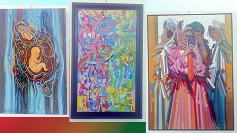 وتشارك الفنانة شفيقة فغير في هذا المعرض بثماني لوحات، عبرت فيها عن الزمن ومآله على البشر والبنيان، كما رسمت لوحتين عن فلسطين، مساندة منها للقضية الفلسطينية، عنونت واحدة منهما بـ “كن فيكون”.