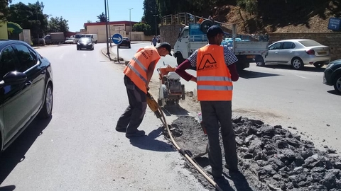 تدخل أعوان وحدة صيانة شبكات الطرق والتطهير لبراقي أسروت في إطار مهام تصليح الأجزاء المتضررة من الطريق العمومي على مستوى حي 2004 مسكن ببلدية براقي.
