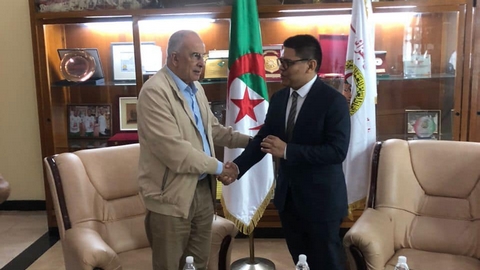 استقبل الأخ اعمر تقجوت، الأمين العام للاتحاد العام للعمال الجزائريين رفقة أعضاء من الأمانة الوطنية وإطارات نقابية، وفداً دولياً متمثلا في سعادة سفير جمهورية نيكاراغوا، ووفودا نقابية من اتحادات الصحراء الغربية ونيكاراغوا وتونس وبوركينا فاسو والسنغال، الذين شاركوا في احتفاليات الذكرى الخمسين لتأسيس الاتحاد العام لعمال الساقية الحمراء واد الذهب الصحراوي.