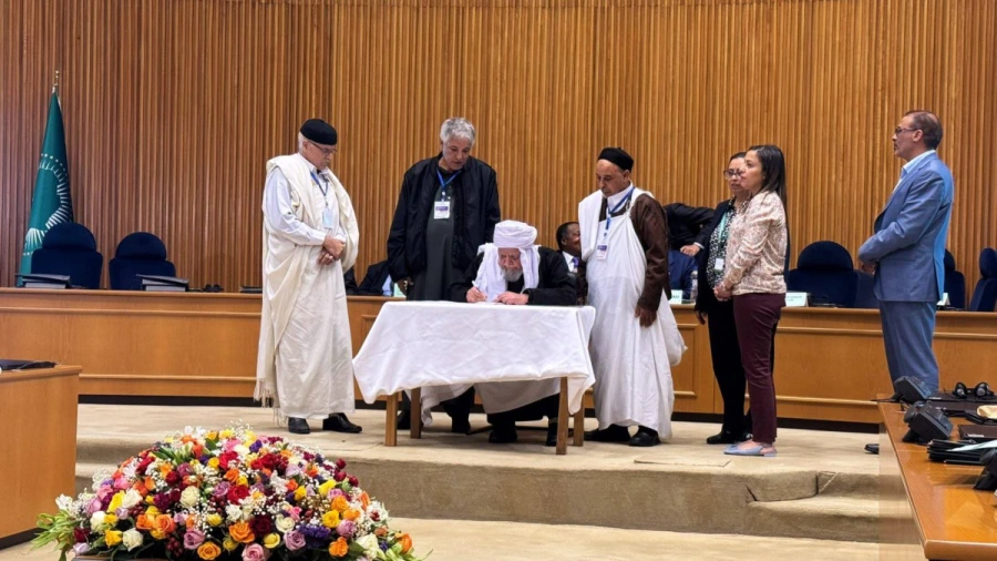 أعلن الاتحاد الإفريقي عن توقيع ميثاق السلام والمصالحة الوطنية الليبية في العاصمة الإثيوبية أديس أبابا.