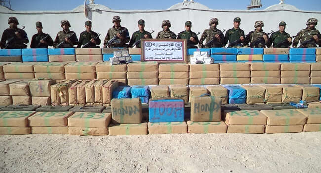 الجزائر- أوقفت مفرزة للجيش الوطني الشعبي وعناصر الدرك الوطني، الأربعاء، ببني ونيف، ولاية بشار تاجر مخدرات من جنسية مغربية بحوزته كمية من الكيف المعالج تقدر بـ (34,5) كيلوغرام، وذلك بحسب ما جاء، الجمعة، في بيان لوزارة الدفاع الوطني.