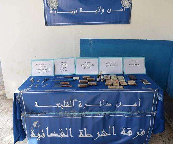 وأسفرت العملية عن توقيف 8 أشخاص، مع حجز 05 صفائح من القنب الهندي، 03 قارورات من سائل مخدر، مبلغ مالي يقدر بـ 392000 دينار من عائدات الترويج.