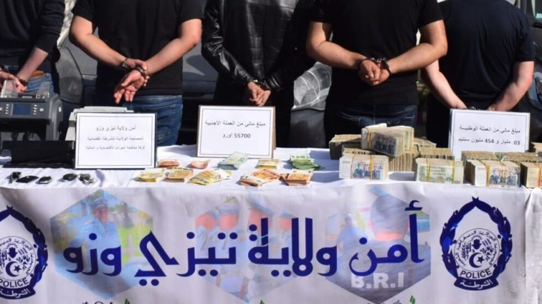 وجاء في البيان أن عناصر فرقة مكافحة الجرائم الاقتصادية والمالية بالمصلحة الولائية للشرطة القضائية لأمن ولاية تيزي وزو تمكنت، بالتنسيق مع الفرقة المتنقلة للشرطة القضائية لبلدية عزازقة، من ضبط و إيقاف خمسة أشخاص تتراوح أعمارهم ما بين 35 و 50 سنةننن، مشتبه فيهم مخالفة الأحكام المتعلقة بالتشريع والتنظيم الخاص بالصرف و حركة رؤوس الأموال من و إلى الخارج, وشبهة تبييض الأموال مع الغش و التهرب الضريبي.
