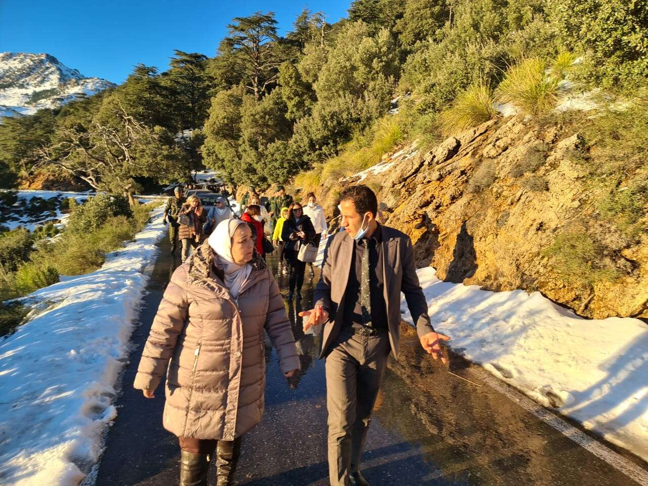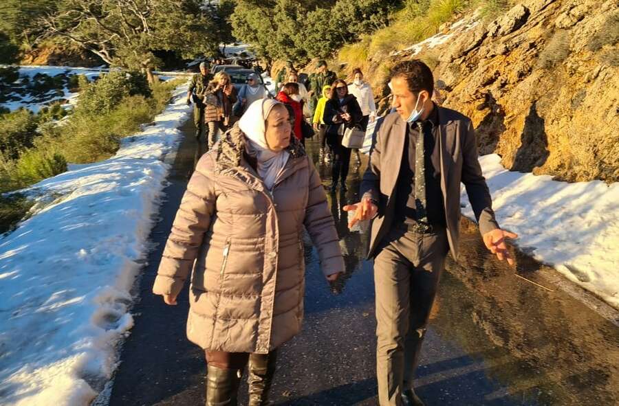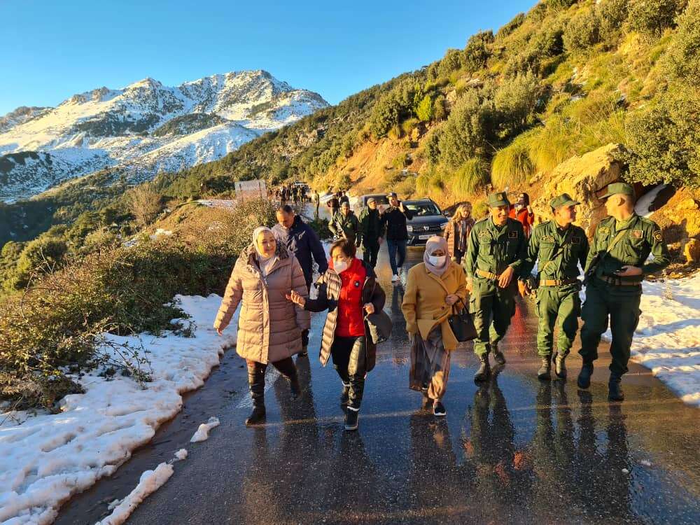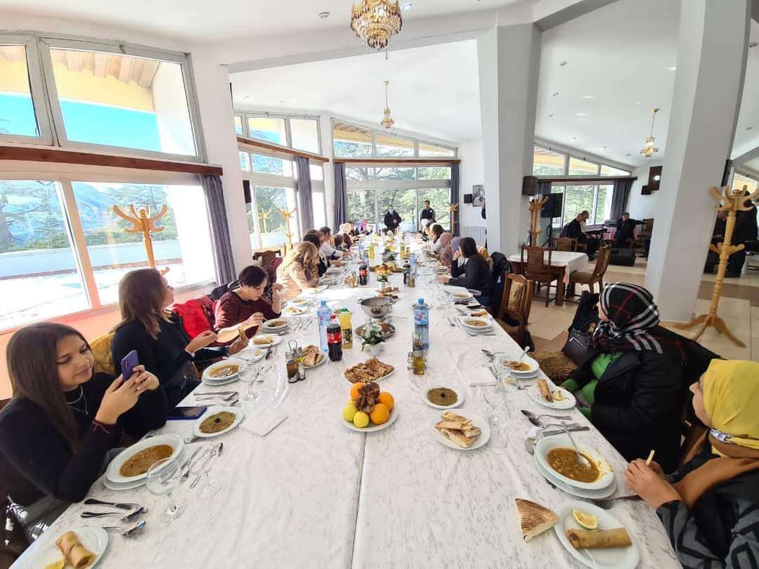 وفي حدود منتصف النهار، انطلق الموكب نحو المرتفعات الفاتنة التي تأسر قلوب زوارها وتبقيها مشدودة إليها، وهناك تم تنظيم مأدبة غذاء تشتمل على مختلف الأطباق التقليدية التي تتميز بها المنطقة خاصة في فصل البرد والشتاء على غرار “البركوكس، الكسكس والتيكربابين”.