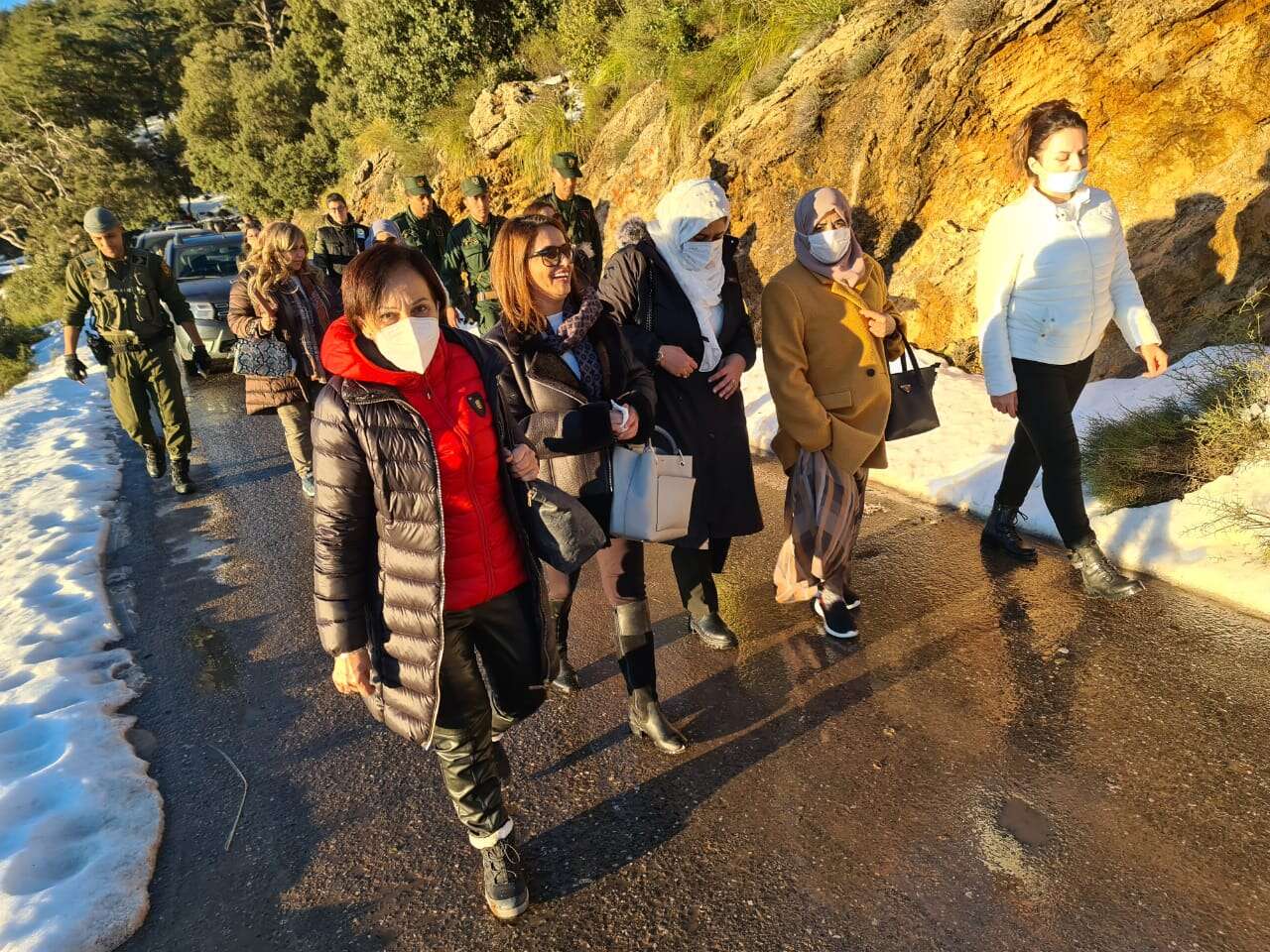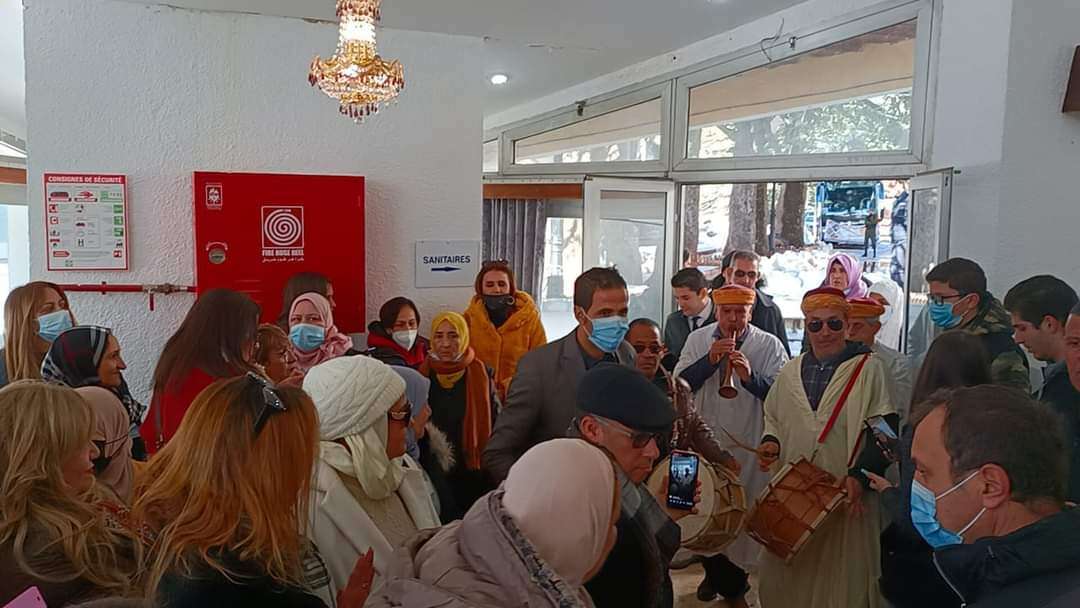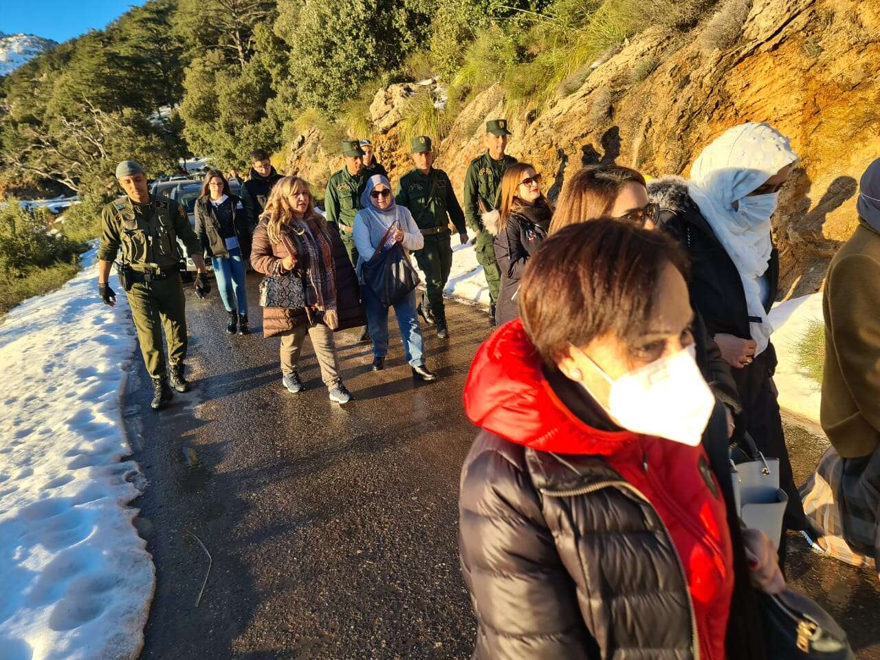 وفي حدود منتصف النهار، انطلق الموكب نحو المرتفعات الفاتنة التي تأسر قلوب زوارها وتبقيها مشدودة إليها، وهناك تم تنظيم مأدبة غذاء تشتمل على مختلف الأطباق التقليدية التي تتميز بها المنطقة خاصة في فصل البرد والشتاء على غرار “البركوكس، الكسكس والتيكربابين”.