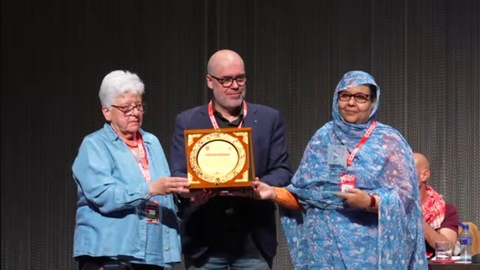 منحت جمعية السلام والتضامن بمنطقة أستورياس الإسبانية، جائزة السلام والتضامن للأمينة العامة للاتحاد الوطني للمرأة الصحراوية، الشابة سيني، تقديرا لجهود الاتحاد في تعزيز التضامن مع نساء العالم والدفاع عن قضايا السلام والحرية.