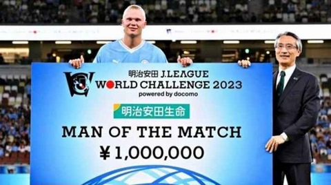 وتمكن هالاند من إحراز هدفين في المباراة عقب مشاركته كبديل، ليحصل على جائزة رجل المباراة، وهي التي أثارت حيرة المشجعين بسبب قيمتها، حيث ظهر في الرقم المطبوع على الشيك الضخم مبلغ (1000000) مع حرف ياباني بجواره، واتضح أنه يعني مليون ين ياباني، وهو ما يعادل 5484 جنيها إسترلينيا فقط.
