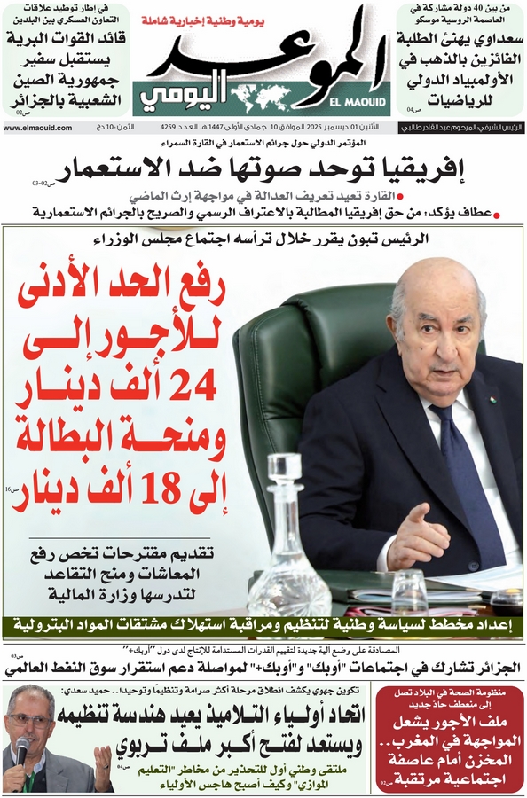 جريدة الموعد اليومي 01 ديسمبر 2025
