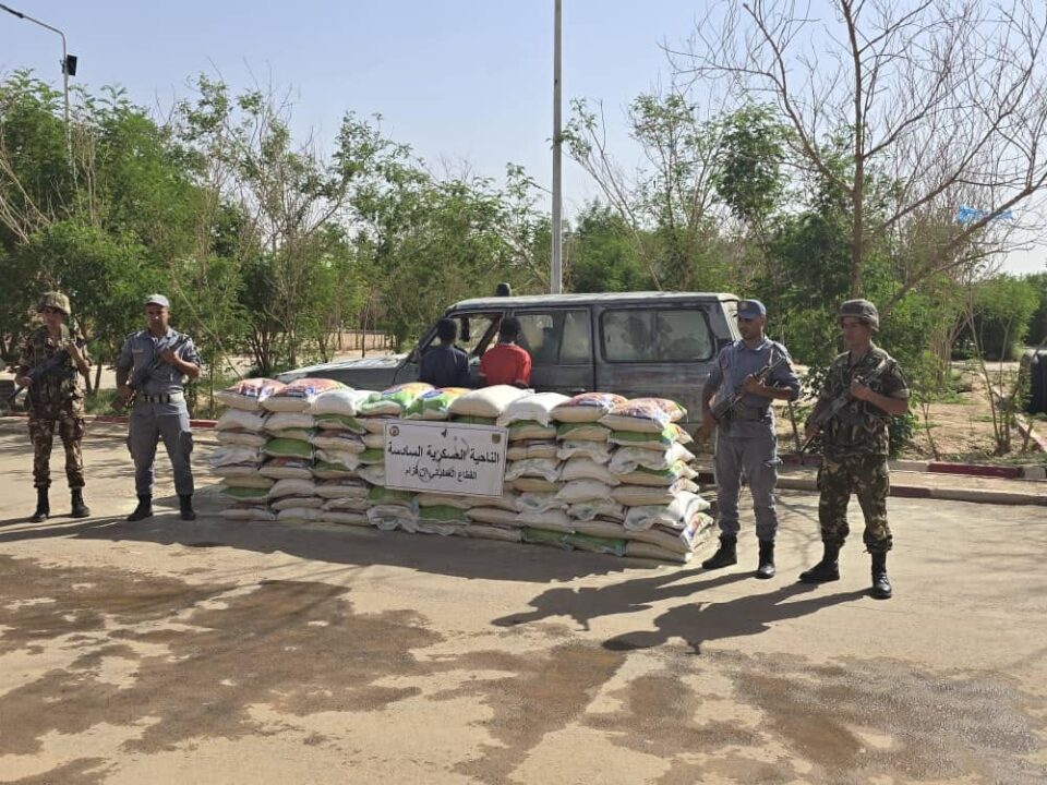 تمكن أعوان الفرقة المتنقلة للجمارك التابعة لمصالح مفتشية الأقسام للجمارك بعين قزام، بإقليم اختصاص المديرية الجهوية للجمارك بتمنراست، على إثر ثلاث عمليات متفرقة تم تنفيذها بالتنسيق مع أفراد الجيش الوطني الشعبي، من حجز 65 كيس بوزن 25 كلغ من السميد (الوزن الإجمالي 1625 كلغ) وأربع مركبات رباعية الدفع استعملت في التهريب، كما تم توقيف سبعة أشخاص أحدهم من جنسية أجنبية.