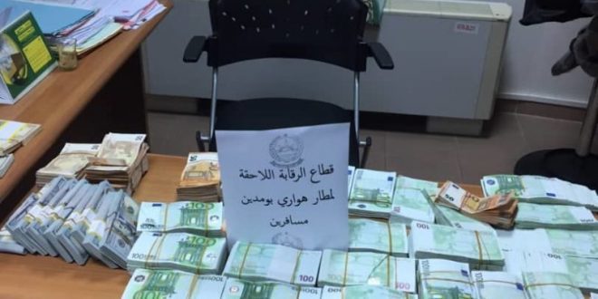 تمكنت مصالح شرطة الحدود بمطار هواري بومدين الدولي، خلال الأسبوع الماضي، من حجز 123 ألف أورو و4550 دولار، و440 غرام من الذهب، لم يتم التصريح بها من قبل أصحابها الذين كانوا متوجهين نحو الخارج.