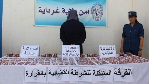 أوقفت شرطة غرداية، امرأة وتضبط بحوزتها 3600 كبسولة من المؤثرات العقلية.
