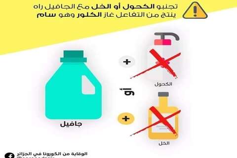 “جودي عبد الفتاح” حذر كذلك من الاستعمال العشوائي لـ “الجافيل” على مستوى المنازل، مطالبا بضرورة تفادي استعمالها بالنظر للأضرار الكبيرة التي تنجم عنها في حال الإفراط، كونها تحتوي على مادة “الكلور” التي تقضي على الجراثيم والبكتيريا والجسيمات المجهرية، لكنها لا تقضي على الفيروس الذي يتكون من غشاء بروتيني وغشاء دهني زائد RAN والذي يتطلب من أجل محاربته معقمات تتوفر على جملة من المكونات والمركبات الكيميائية التي تملك القدرة الكيميائية للقضاء على الطبقة الدهنية المكونة للغشاء أو الطبقة البروتينية إلى جانب تعطيل عمل ARN المسؤولة عن تكاثر واستنساخ الفيروس، وحذر ذات المتحدث من الخطر الكبير الناجم عن استعمال “الجافيل” مع”الخل الأبيض” الذي ينتج عنه “غاز الكلور” الذي أستعمل في الحرب العالمية الأولى والذي يسبب نفس أعراض فيروس “كورونا” ويؤثر على الجهاز التنفسي والعصبي وكذلك على جهاز المناعة لدى الإنسان. كما كشف ذات المتحدث عن ضرورة النظر في تركيز “الكلور” الذي هو عبارة عن مادة قلوية تؤثر في حال استعمالها دون قفاز على البشرة، ووجه نداء لأرباب المنازل التي تحتوي على أطفال صغار وشيوخ وعجائز من أجل تفادي استعمال “الجافيل” كون “الكلور” يحتوي على مادة سامة جدا قد تؤدي إلى ما لا يحمد عقباه والاستعانة بـ “الخل الأبيض” مع إضافة كمية من الماء.