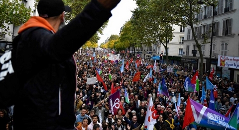 احتجاجات انضمت إليها أحزاب اليسار جميعها، التي كانت تتحضر منذ أشهر لمواجهة عهد إيمانويل ماكرون في الشارع والبرلمان، وأعطت المطالب الاجتماعية خلفيات سياسية عاصفة، إذ هتف المشاركون في المسيرة الكبرى في باريس، الأحد، للخروج من ورطة الحرب الأوكرانية ووقف المساعادت الهائلة لكييف لمصلحة إنقاذ الفرنسيين من مسلسل الانهيار الاقتصادي والاجتماعي.