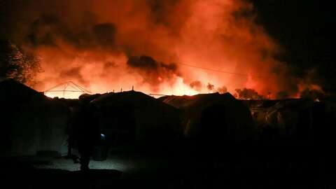 اندلع حريق في مخيم “موريا” المكتظ بطالبي اللجوء في جزيرة ميديللي (لسبوس) اليونانية.