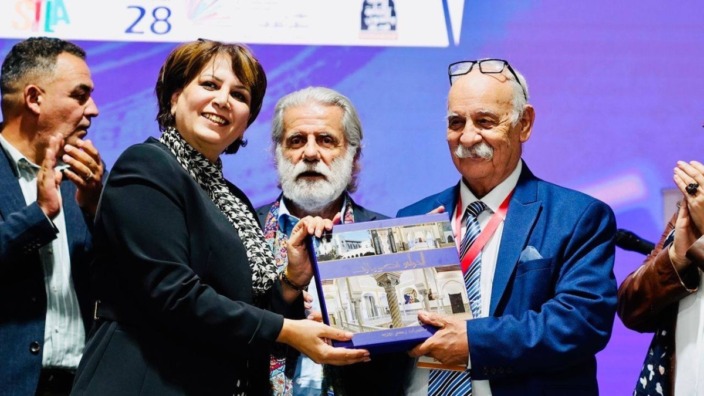 وفي حديثه أمام نخبة من الأدباء والمفكرين وجمهورٍ غصّت به القاعة، استعاد خليفة محطات من تجربته الفنية والفكرية، متأملاً في علاقة الكلمة بالموسيقى، ومؤكداً رؤيته للفن كـ “فعل مقاوم وإنساني” يجسد روح الحرية والجمال في مواجهة القبح والنسيان. كما شدّد خليفة على أن الكلمة تظلّ نواة الفعل الإبداعي، ومعبراً صادقاً عن وجدان الشعوب وتوقها للكرامة، مستحضراً في حديثه تجارب الشعراء الذين رافقوا مسيرته، وفي مقدمتهم محمود درويش. وقد عرفت الندوة حضور السيدة مليكة بن دودة وزيرة الثقافة والفنون، التي شاركت الحضور النقاش حول أثر الفن في الوجدان الجمعي، مؤكدة أن الثقافة جسرٌ دائم للتواصل بين الشعوب وصوتٌ للإنسان الحر. وفي ختام الأمسية، كرمت السيدة الوزيرة الفيلسوف فتحي تريكي، عرفانا بإسهاماته في الحقل الأكاديمي والثقافي والفكري، قبل أن يستجيب مارسيل لطلب الجمهور مردداً معهم مقطعا من أغنيته الخالدة “منتصب القامة أمشي”، في لحظةٍ مؤثرة اختتمت بها الندوة على إيقاع الكلمة والموسيقى والروح الحرة. وكشفت مصادرنا أن مارسيل خليفة سيعود إلى الجزائر في ديسمبر المقبل، حيث سيحيي حفلا ضخما بدار الأوبرا قد يغني خلاله لنص جزائري وهو الذي قال: “لم أغنّ لأي شاعر جزائري، للأسف، وهذا نقص منا، ونحن مقصرون، لكن سأغنّي وأكتب موسيقى لنص جزائري قريبا”.