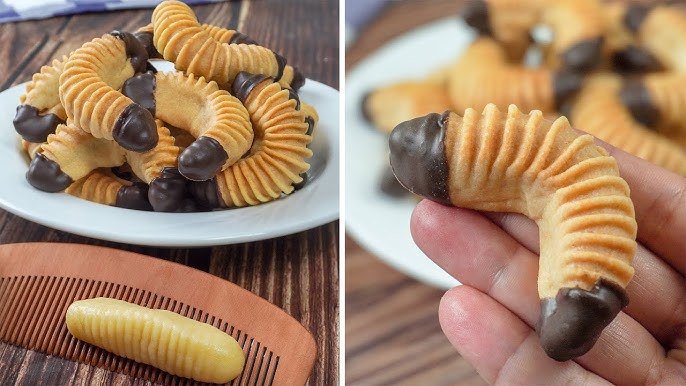ونضيف ماء الزهر بالتدريج حتى نتحصل على عجينة قابلة للتشكيل نشكلها على شكل أعمدة. للتشكيل نأخذ مشط اسنانه متوسطة الحجم نرشه بالفرينة ونبسط فوقه بالأصابع العجين
