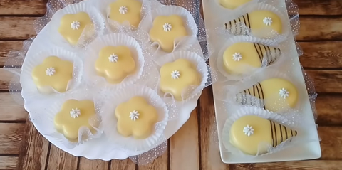 – تطلى حبات الحلوة و تزين بالورود