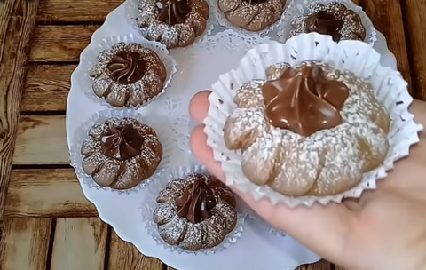 – بعد ان تبرد ترش بالسكر الناعم و تملأ بشكلاطة الطلي