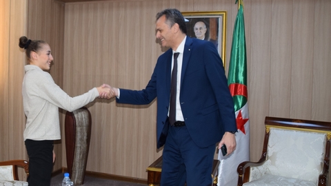 استقبل وزير الشباب والرياضة عبد الرحمن حماد، بمقر الوزارة، بطلة الجمباز الجزائرية كايليا نمور، نظير الإنجاز التاريخي الذي حققته لاعبة الجمباز مؤخرا، بتحقيقها ميدالية فضية ضمن فعاليات كأس التحدي للجمباز – باريس 2023، في اختصاص العارضتين المتوازيتين مختلفتي الارتفاع، بعلامة 15.033.