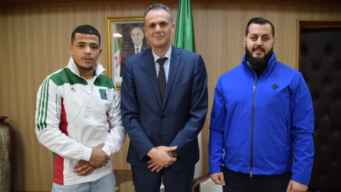 استقبل وزير الشباب والرياضة عبد الرحمان حماد، المصارع الجزائري دريس مسعود رضوان.