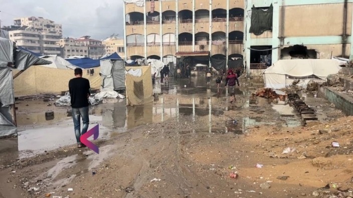 ولليوم الثاني على التوالي، اجتاحت مياه الأمطار الناتجة عن المنخفض الجوي مئات خيام النازحين ومراكز الإيواء في القطاع، ما زاد من تفاقم الوضع الإنساني المأساوي المتراكم جراء عامين من حرب الإبادة الجماعية التي شنتها دولة الاحتلال.
