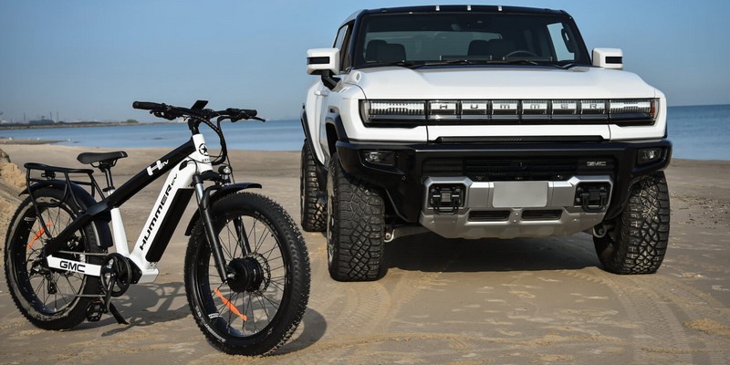 تحمل الدراجة الرياضية شعار جي إم سي وشعار السيارة الكهربائية، وجدير بالذكر أن دراجة همر توفر دفع ثنائي بكلا العجلتين الأمامية والخلفية.