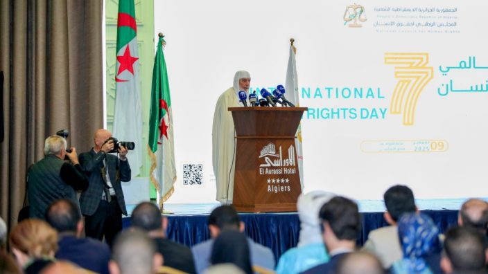 وأوضح عميد جامع الجزائر، في تدخله خلال الندوة التي نظمت بفندق الأوراسي، بمناسبة اليوم العالمي لحقوق الإنسان، الذي كان تحت شعار: “حقوق الإنسان ركيزة كرامتنا في الحياة اليومية”، أن دور جامع الجزائر لا ينحصر في الوظائف الرّوحيّة والعلميّة والثقافيّة فقط، بل يتجاوزها إلى تربية الضّمير الإنساني، وكذا إرساء القيم التي تحمي كرامة الإنسان، حيث حقوق الإنسان، لم تعد مجرّد نصوصٍ قانونيّة، بل رسالة وجودية، وبالمقابل فقد سبق الإسلام المواثيق الدولية بأربعة عشر قرنًا، الذي يعتبر تكريما للإنسان، وحفظ حقوقه المادية والمعنوية. وأضاف الشيخ محمد المأمون القاسمي الحسني، لضرورة أن تترجم احترام حقوق الإنسان، إلى سلوكٍ حضاريٍّ يوميّ، وذلك على مستوى البيت والمدرسة وكذا الشارع، معتبرا مظاهر العنف اللّفظيّ، والتنمّر، والإقصاء، التي نرها ليست مجرّد أخطاء اجتماعيّة، بل اعتداءٌ صارخٌ على الكرامة الإنسانيّة. مشددا في ذات السياق، على أنّ إرساء دولة الحقّ والقانون، يتطلّب ثلاثة مرتكزات تتمثل الأولى في بناء الوعي، وكذا تعزيز العدالة، إضافة لحماية الفئات الهشّة، منبها في ذات السياق، إلى ما يشهده العالم من سقوطٍ للقيم، واختلالٍ في الموازين. كما استنكر في الأخير، سياسة ازدواجيّة المعايير التي تُمارس تجاه قضايا الإنسان المستضعف، حيث يجب التمسّك بميزان العدل المطلق الذي لا يشوبه باطل.