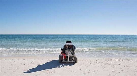 وتمكنت هولت بمساعدة من بعض الموظفين في الدار من المشي على الرمل الأبيض، فيما شعرت برذاذ المياه على وجهها.