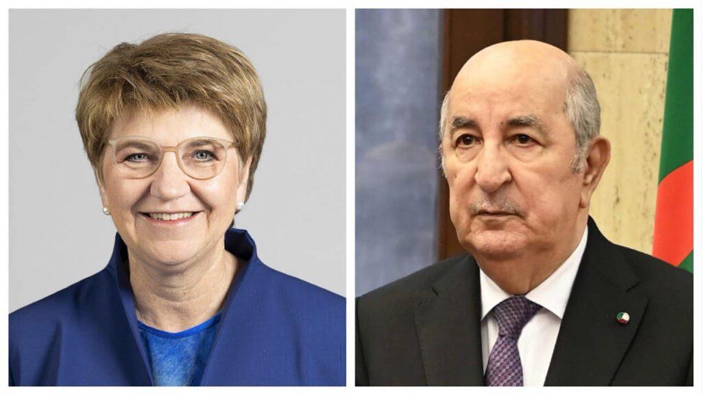 كما أكدت رئيسة الاتحاد السويسري لرئيس الجمهورية، إستعدادها للعمل معا من أجل تطوير العلاقات التاريخية وتكثيف التعاون الاقتصادي في كافة المجالات بما يخدم المصلحة العليا للشعبين الجزائري والسويسري.