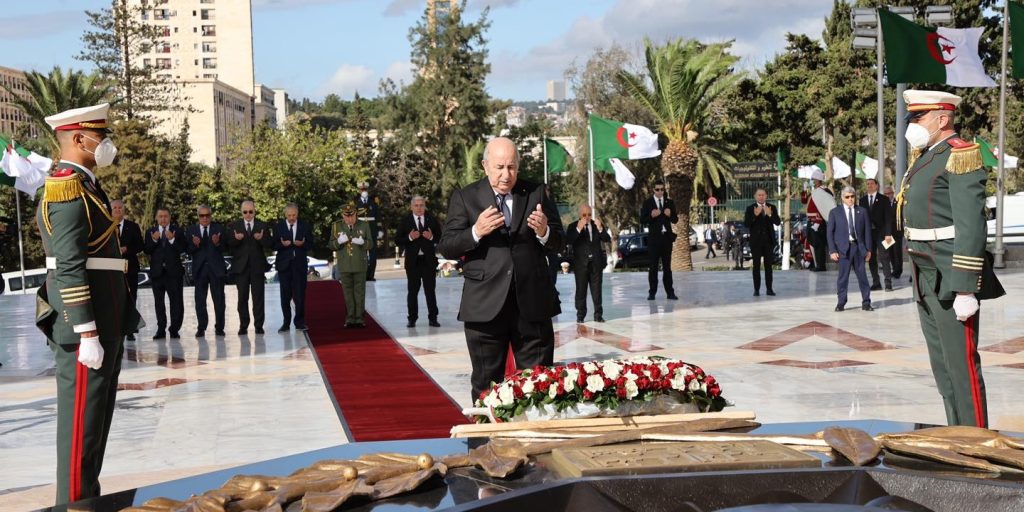 ترحم رئيس الجمهورية, السيد عبد المجيد تبون, اليوم الثلاثاء, بمقام الشهيد (الجزائر العاصمة), على أرواح شهداء الثورة التحريرية المجيدة.
