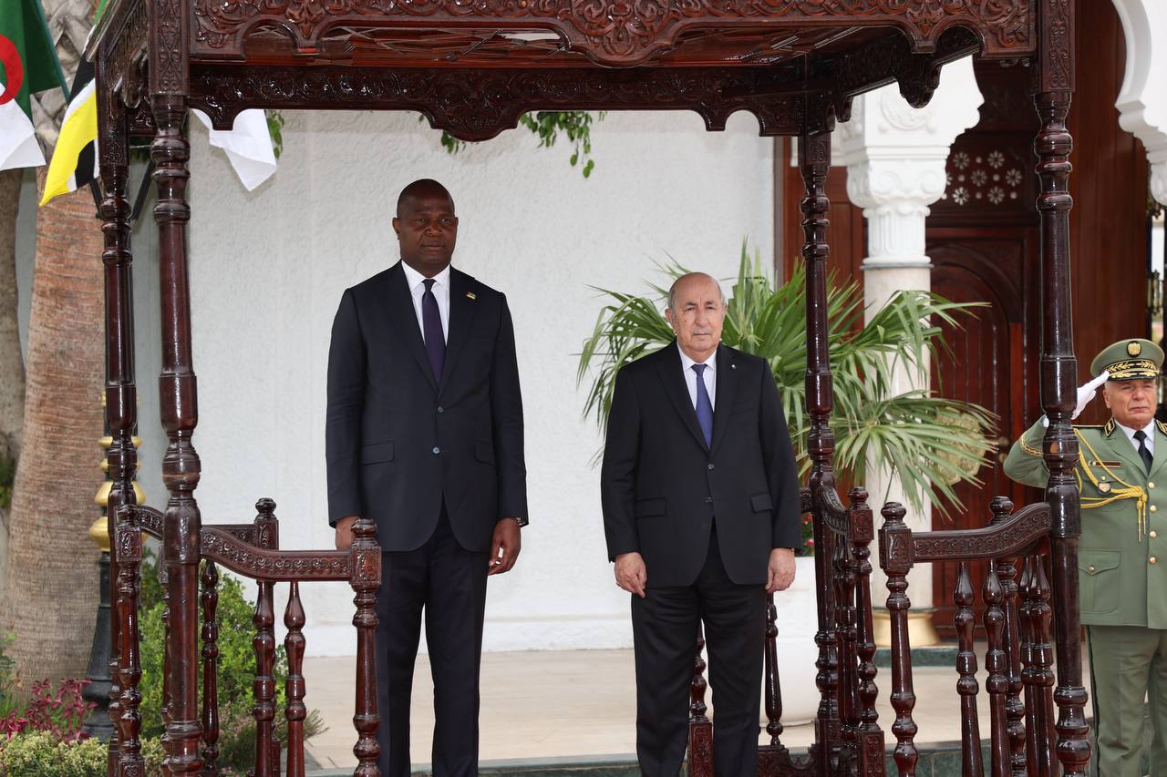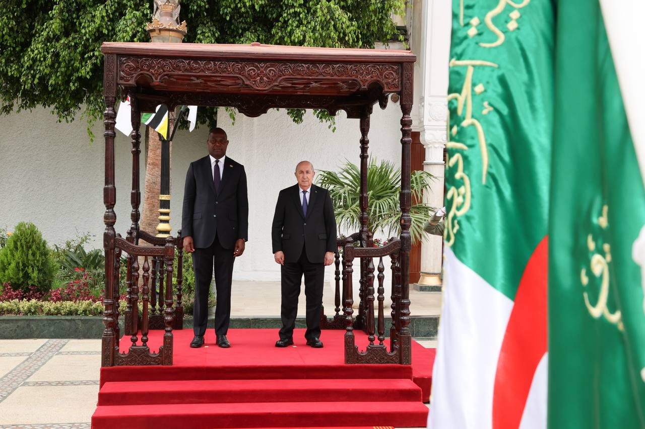 خص رئيس الجمهورية, السيد عبد المجيد تبون, السبت بمقر رئاسة الجمهورية, رئيس جمهورية الموزمبيق, السيد دانيال فرانسيسكو شابو, باستقبال رسمي.