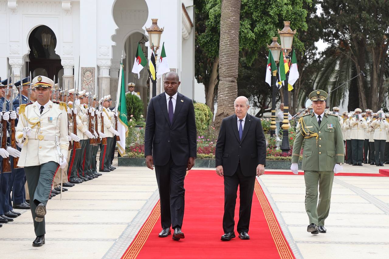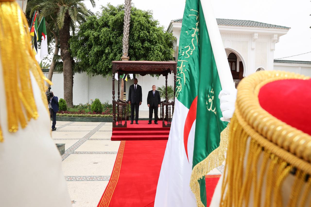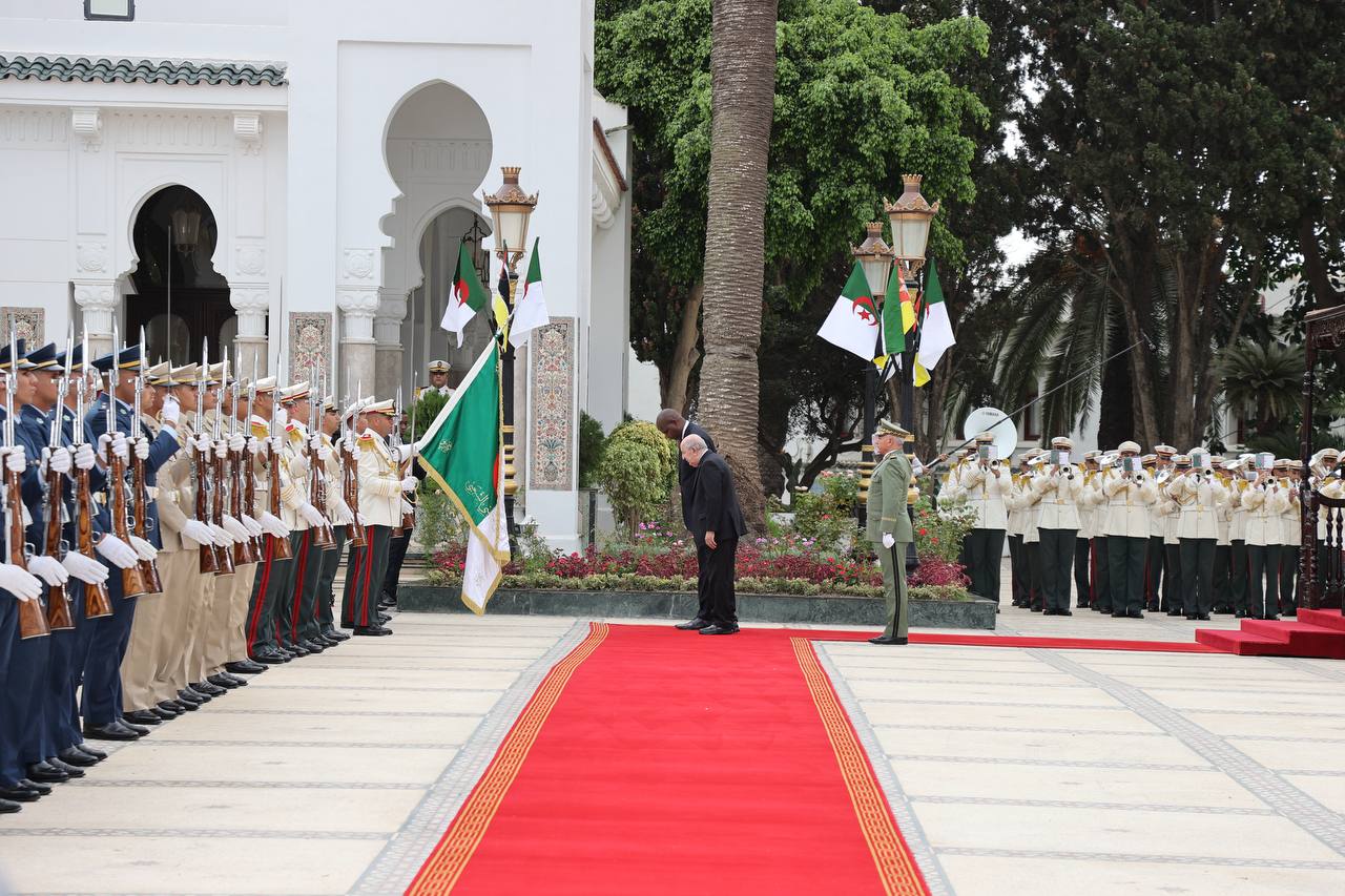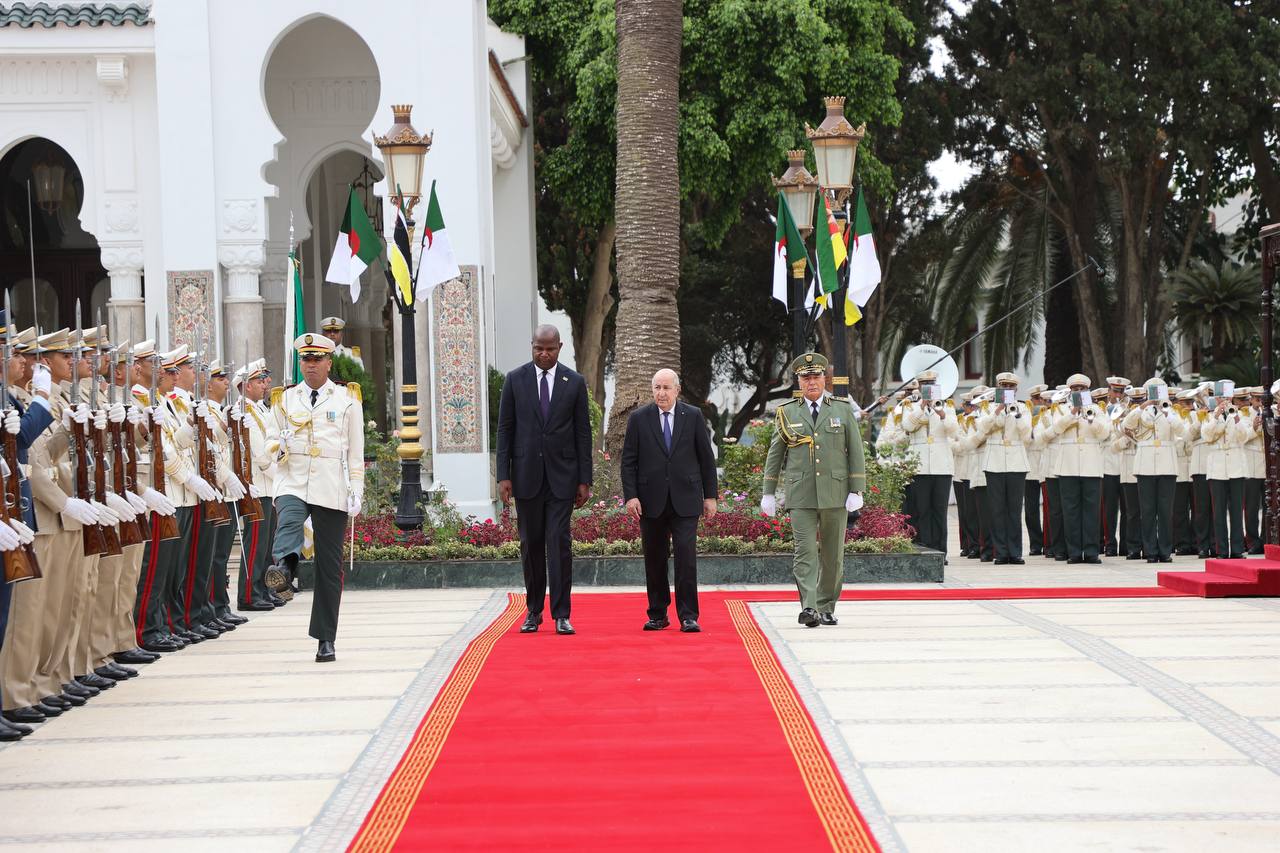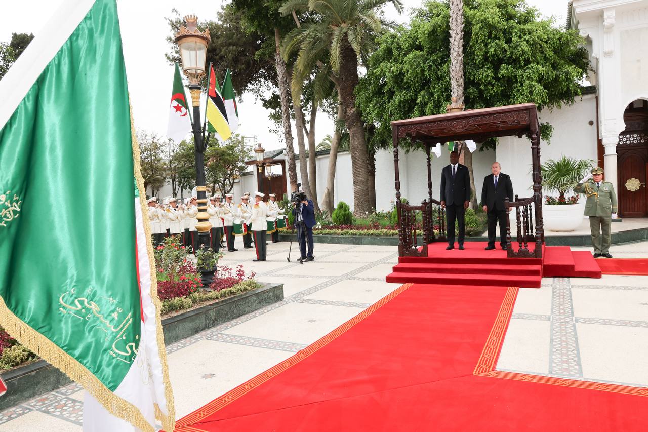 وقد استمع الرئيسان إلى النشيدين الوطنيين للبلدين, كما استعرضا تشكيلات من مختلف قوات الجيش الوطني الشعبي التي أدت لهما التحية الشرفية, قبل أخذ صورة تذكارية. وقبلها, كان الرئيس دانيال فرانسيسكو شابو، قد توجه إلى مقام الشهيد, أين وقف دقيقة صمت ووضع إكليلا من الزهور أمام النصب التذكاري المخلد لشهداء الثورة التحريرية المجيدة. ليزور بعد ذلك المتحف الوطني للمجاهد, أين قدمت له شروحات حول مختلف المراحل التاريخية للجزائر وتاريخها النضالي, بدء من المقاومات الشعبية مرورا بالحركة الوطنية ووصولا عند الثورة التحريرية المجيدة.
