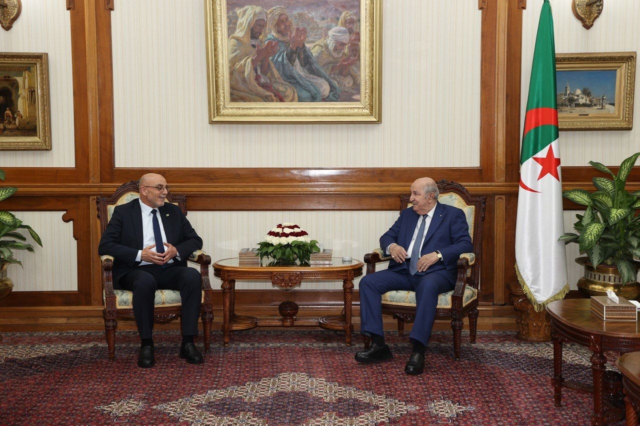 استقبل رئيس الجمهورية السيد عبد المجيد تبون رئيس حركة مجتمع السلم، السيد عبد العالي حساني الشريف بطلب منه.