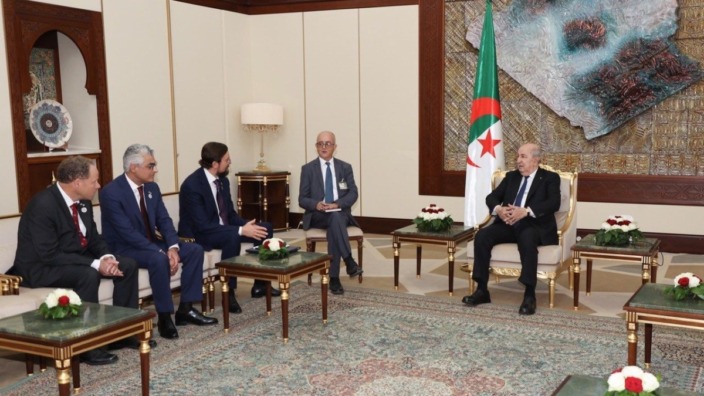 استقبل رئيس الجمهورية، السيد عبد المجيد تبون، رئيس منظمة أرباب الأعمال الروسية (بزنس روسيا) السيد أليكسي ريبيك، حسب ما أورده بيان لرئاسة الجمهورية.