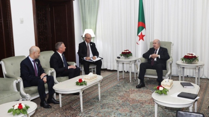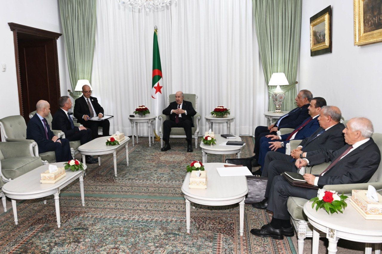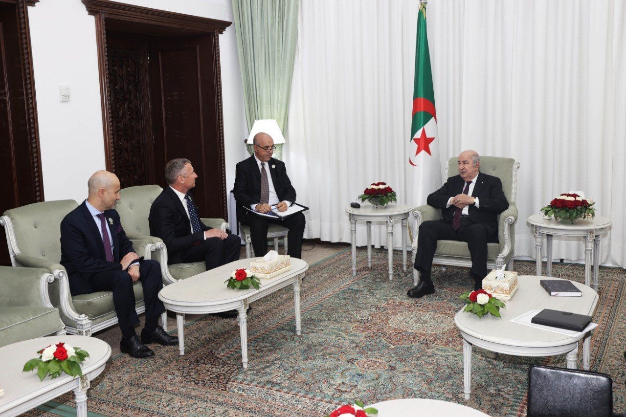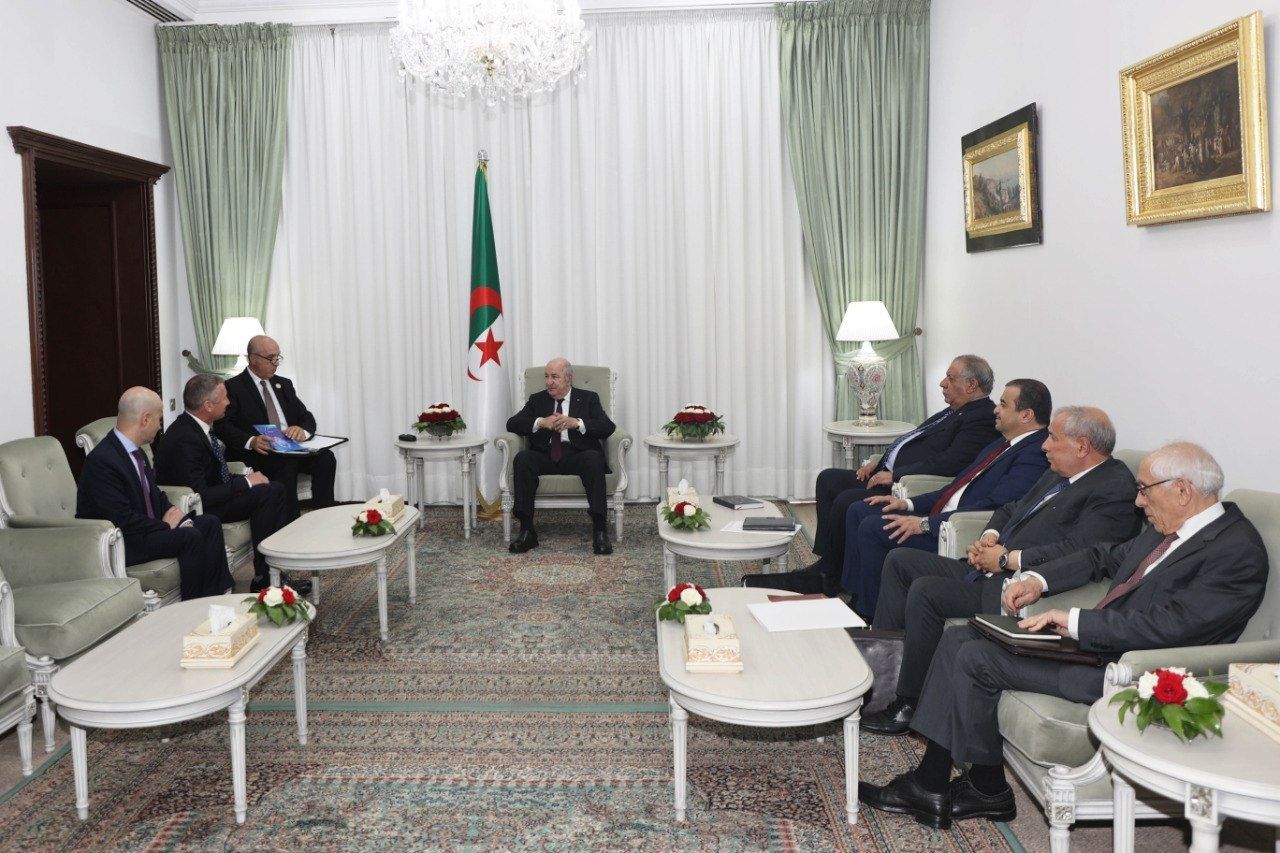 وحضر اللقاء مدير ديوان رئاسة الجمهورية, السيد بوعلام بوعلام, ووزير الدولة وزير الطاقة والمناجم والطاقات المتجددة, السيد محمد عرقاب, والرئيس المدير العام لشركة سوناطراك, السيد رشيد حشيشي, والسيد عمار عبة, مستشار لدى رئيس الجمهورية, مكلف بالشؤون الدبلوماسية.