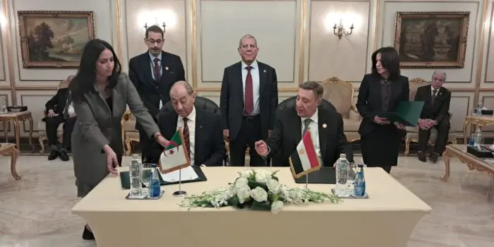 بمناسبة مشاركته في إجتماع القاهرة الثامن رفيع المستوى لرؤساء المحاكم الدستورية والمحاكم العليا والمجالس الدستورية الإفريقية، السيد عمر بلحاج رئيس المحكمة الدستورية الجزائرية يوقع مذكرة تفاهم مع نظيره السيد بولس إسكندر فهمي رئيس المحكمة الدستورية العليا المصرية وذلك من من أجل تعزيز التعاون في مجال القانون الدستوري والعدالة الدّستورية، عن طريق تبادل المعلومات والتجارب والخبرات والزيارات بين المحكمتين.