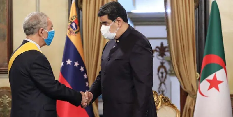 وأشاد مادورو بعمل السفير في تعزيز العلاقات بين الجزائر وفنزويلا، وقال الرئيس أن البلدان تتطلع إلى القرن الحادي والعشرين من أجل التنمية والحياة، وتريد السلام والعدالة.