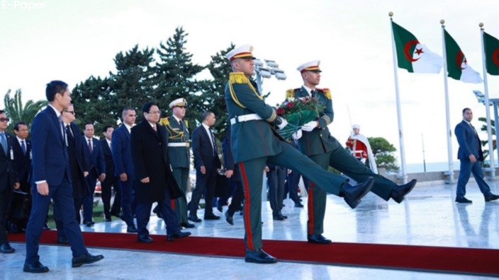 توجه رئيس وزراء جمهورية فيتنام الاشتراكية, السيد فام مينه شينه، الأربعاء, إلى مقام الشهيد بالجزائر العاصمة, حيث وقف دقيقة صمت ووضع إكليلا من الزهور أمام النصب التذكاري المخلد لشهداء الثورة التحريرية المجيدة.