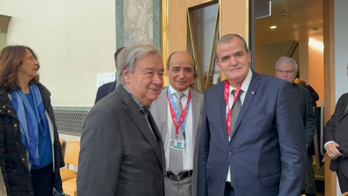 وخلال اللقاء الذي جرى بحضور السفير والممثل الدائم للجزائر لدى مكتب الأمم المتحدة بجنيف والمنظمات الدولية بسويسرا، رشيد بلادهان، حمل الأمين العام للأمم المتحدة، السيد رزيق “نقل تحياته الخالصة وتقديره إلى رئيس الجمهورية السيد عبد المجيد تبون”، يضيف البيان.
